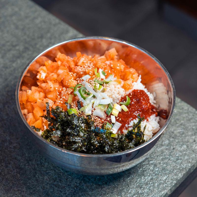 Rice stir-fried with dakgalbi sauce and seasoned seaweed.