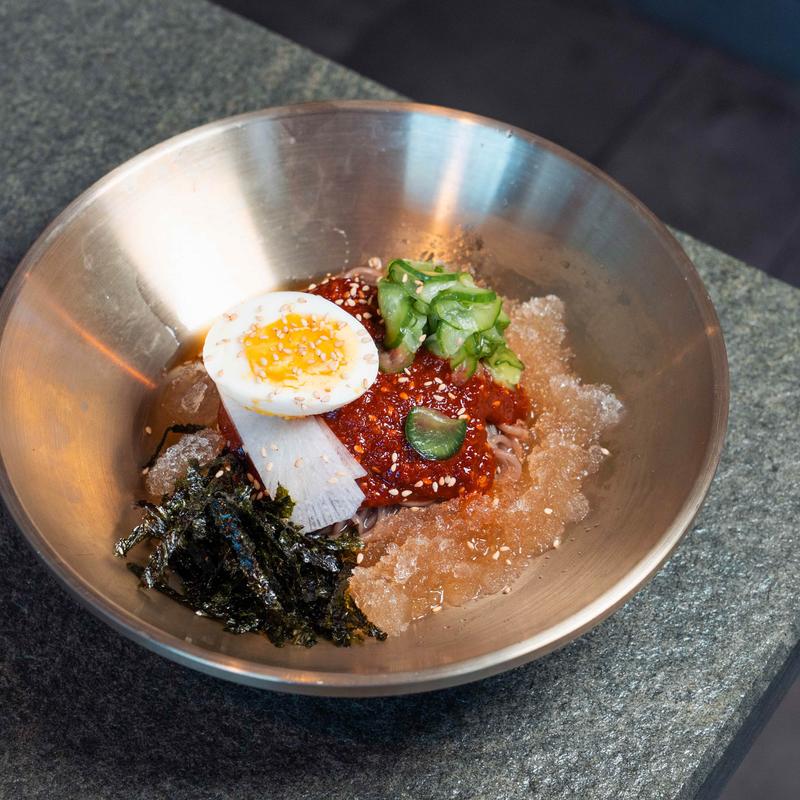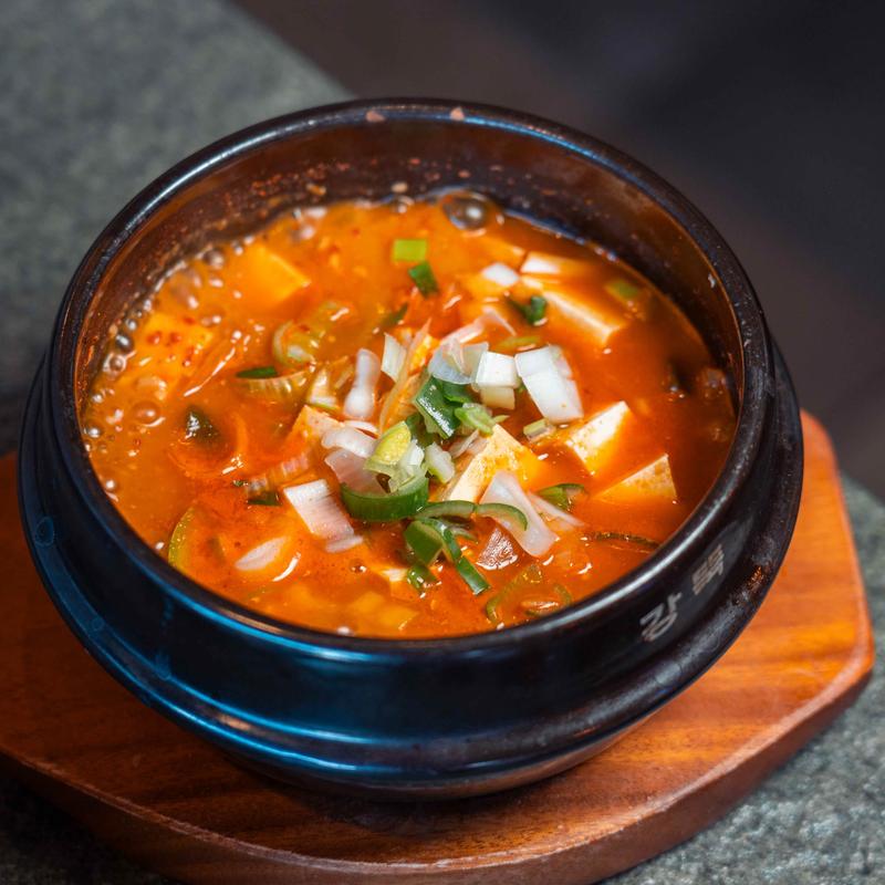 A deep-flavored stew with well-fermented kimchi, pork belly, and tofu.